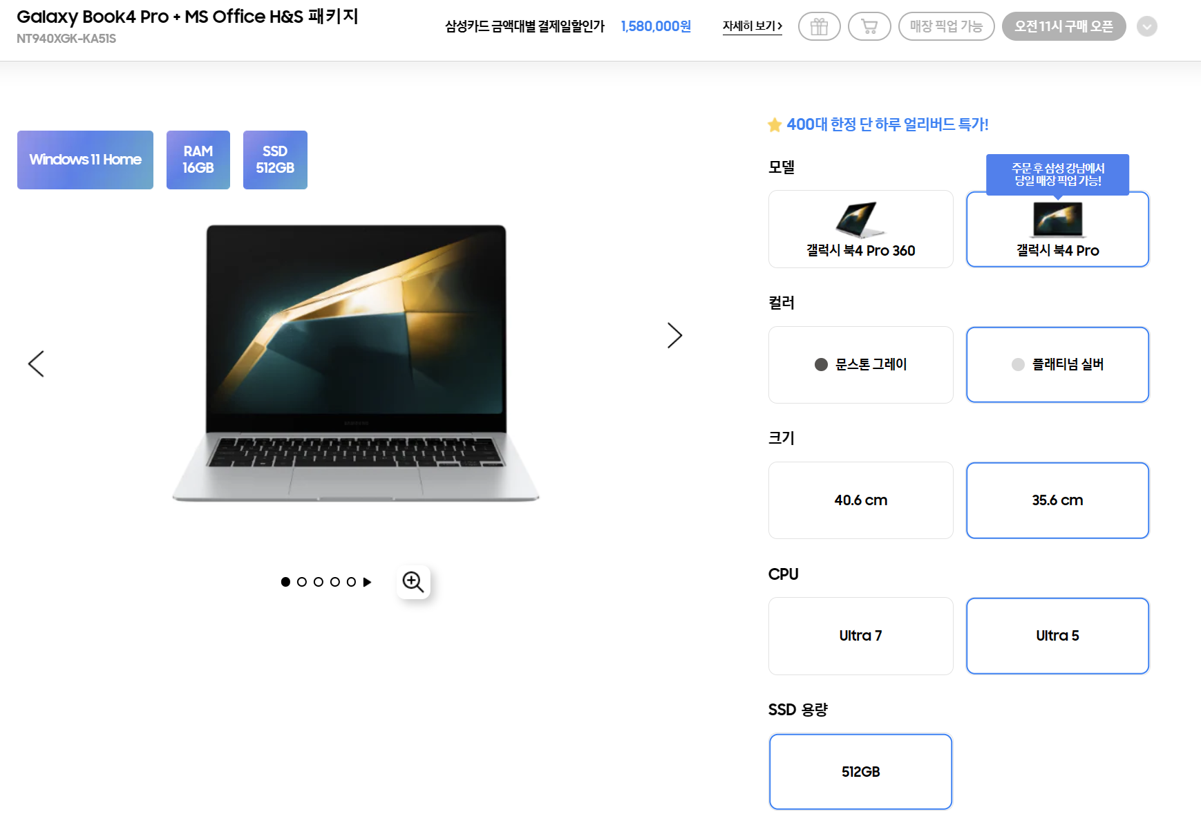 ธํธ๋ถ ๊ตฌ๋งค์ ์ด์์ฒด์ (์๋์ฐ11)๊ฐ ํฌํจ๋ ์ ํ์ ๊ตฌ๋งคํด์ผ ํฉ๋๋ค.
