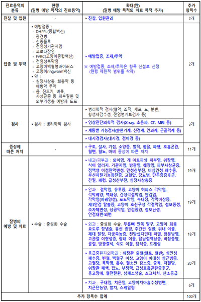 - ์ ํ์ง๋ฃ:ํ์์ง๋ฃ ์ค ๋ฐ๊ฒฌ๋ ์ง๋ณ์ ๋ํ ์น๋ฃ๋น ๋ฐ ์ค์ฑํ์์ ๋น๋ฑ(20๋ง์)