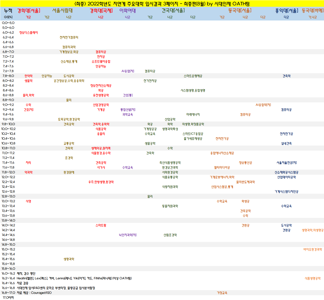 λλ€. κ° κ³Όλͺ©λ³λ‘ κ°λ