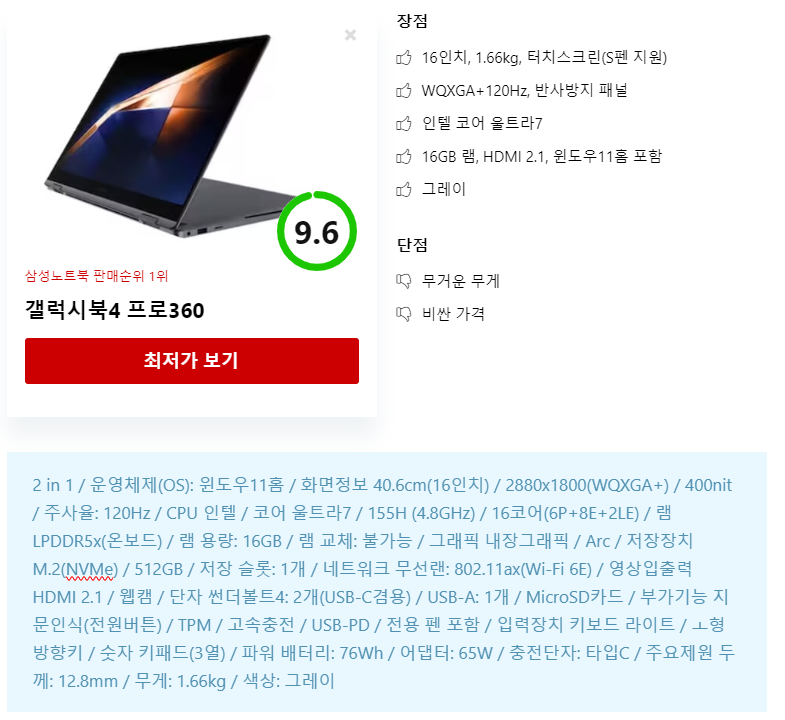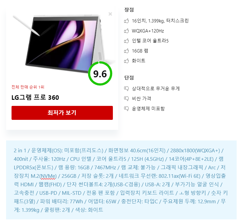 CPU ์ฑ๋ฅ์ LG๊ทธ๋จ ํ๋ก360 ๋ณด๋ค ๋์ง๋ง ๊ฐ๊ฒฉ๋๋ ๋น์ทํฉ๋๋ค.